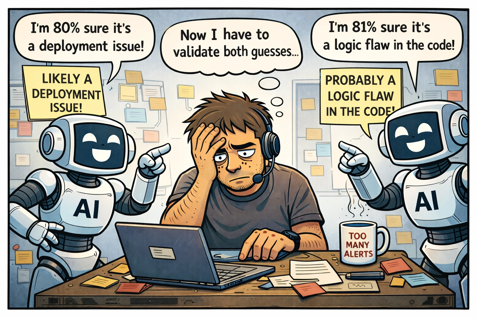 The result is familiar: faster guesses, more alerts, and engineers spending their time validating AI output instead of resolving the incident itself. “Human-in-the-loop” becomes a safety net for inaccuracy. Speed increases. So does the work.